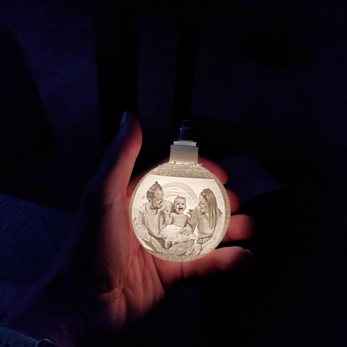 La Bola de Navidad de 60 mm de diámetro con luz LED y personalizada con foto es un producto único y encantador que combina la magia de la temporada navideña con la tecnología moderna de impresión 3D. Esta hermosa bola de adorno tiene un diseño especial que la distingue de las tradicionales, ya que incorpora una luz LED en su interior y permite personalizarla con una foto de tu elección.